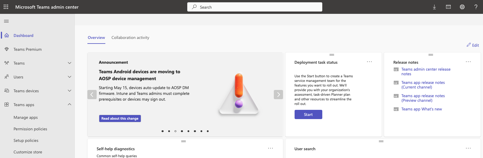 To manage Apps, there is a dedicated menu in the Admin center: Teams apps (opens new window)